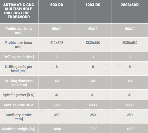 ENDAVOUR er en CNC-styret bore- og savestation til rør og bjælker. Med 3 uafhængige og enorm stærke spindler og automatisk værktøjsskifte, kan denne maskine virkeligt effektivisere produktionen. Den tilbyder boring, tapping, fræsning, scribing, countersinking, markering og savning med båndsav.
