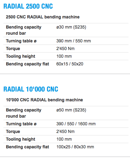 Radial CNC fås i 3 forskellige udgaver med hver deres bukkestyrke: