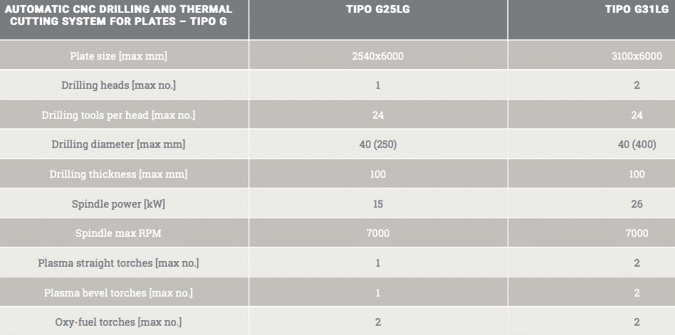 TIPO G er en meget alsidig maskine, som kan udføre en lang række opgaver indenfor bearbejdning af metalplader. Maskinen kan udstyres til at udføre henholdsvis plasmaskæring, oxygenskæring, boring, fræsning, tapping, countersinking og scribing, og alt sammen i meget tykke og store metalplader.